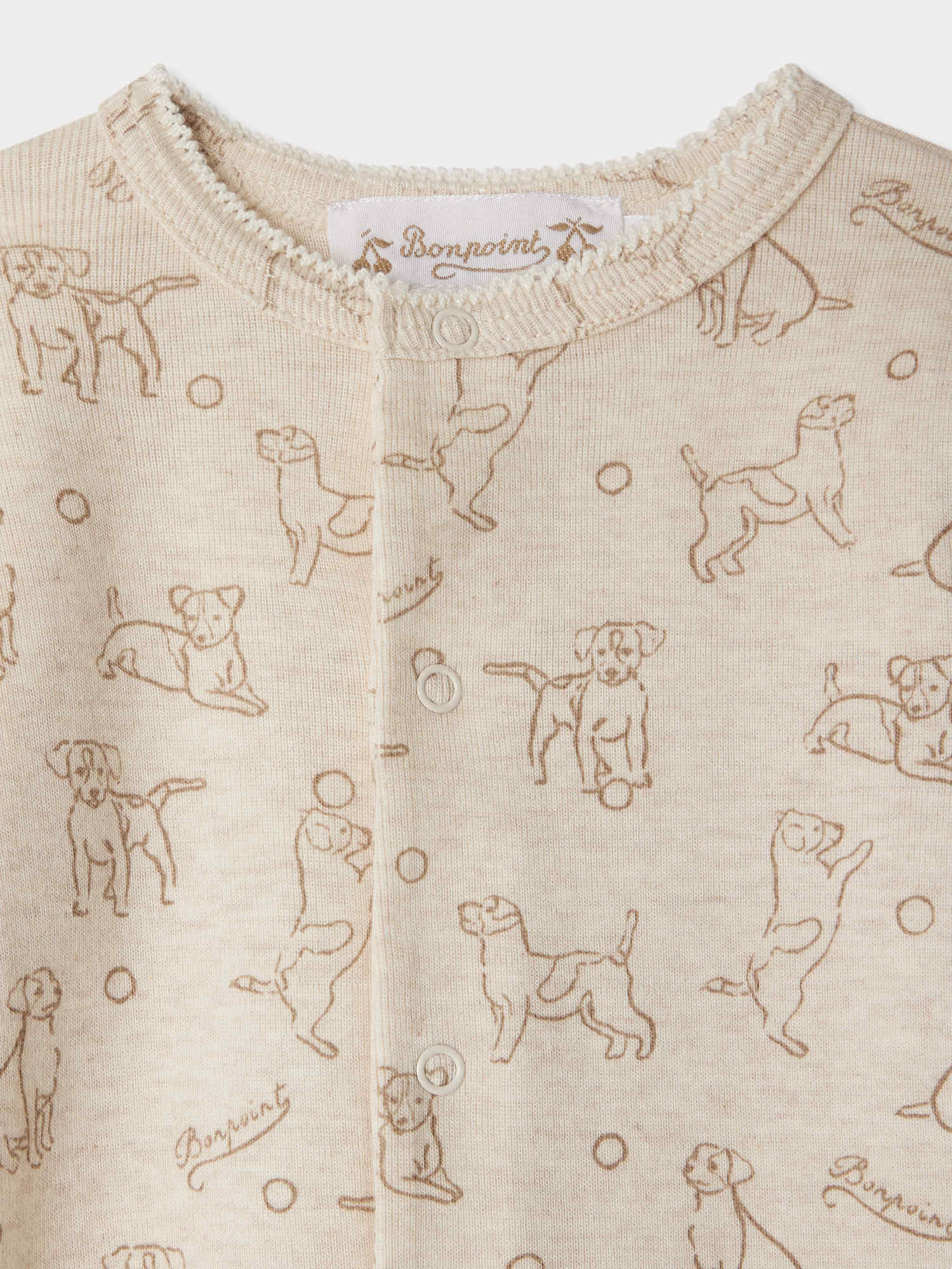 Ekru , Köpek baskılı , önden çıtçıtlı tulum