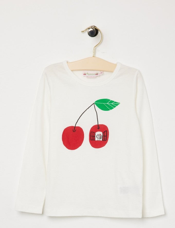 Kiraz baskılı , uzun kollu kız çocuk t-shirt