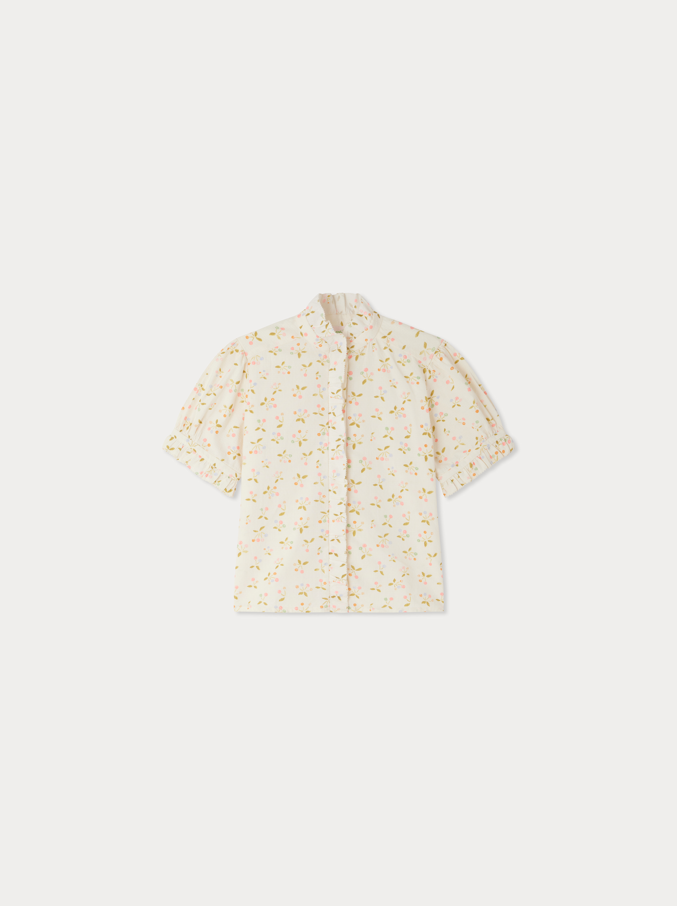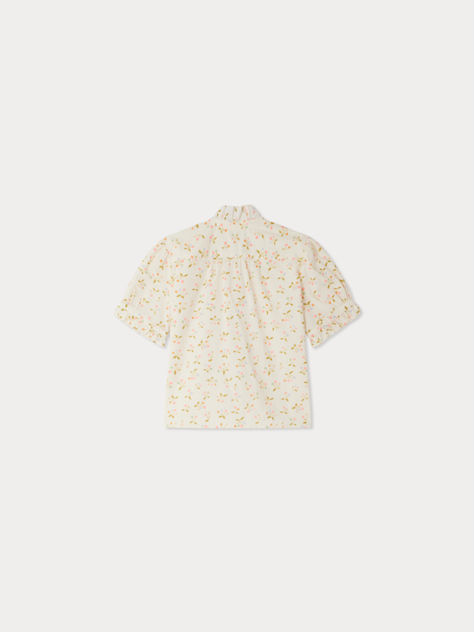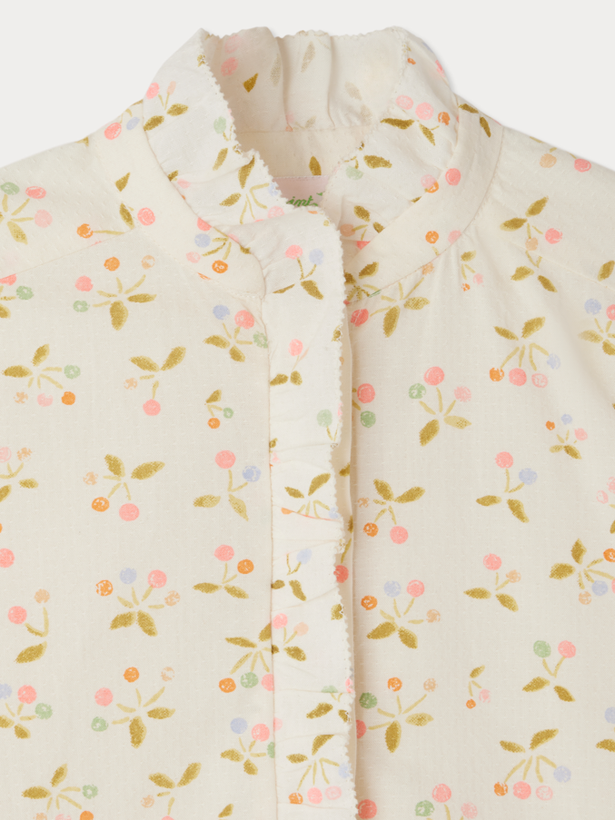 Bonpoint Ekru Pembe Kiraz Desenli Fırfırlı İnce Vual Kız Çocuk Gömlek