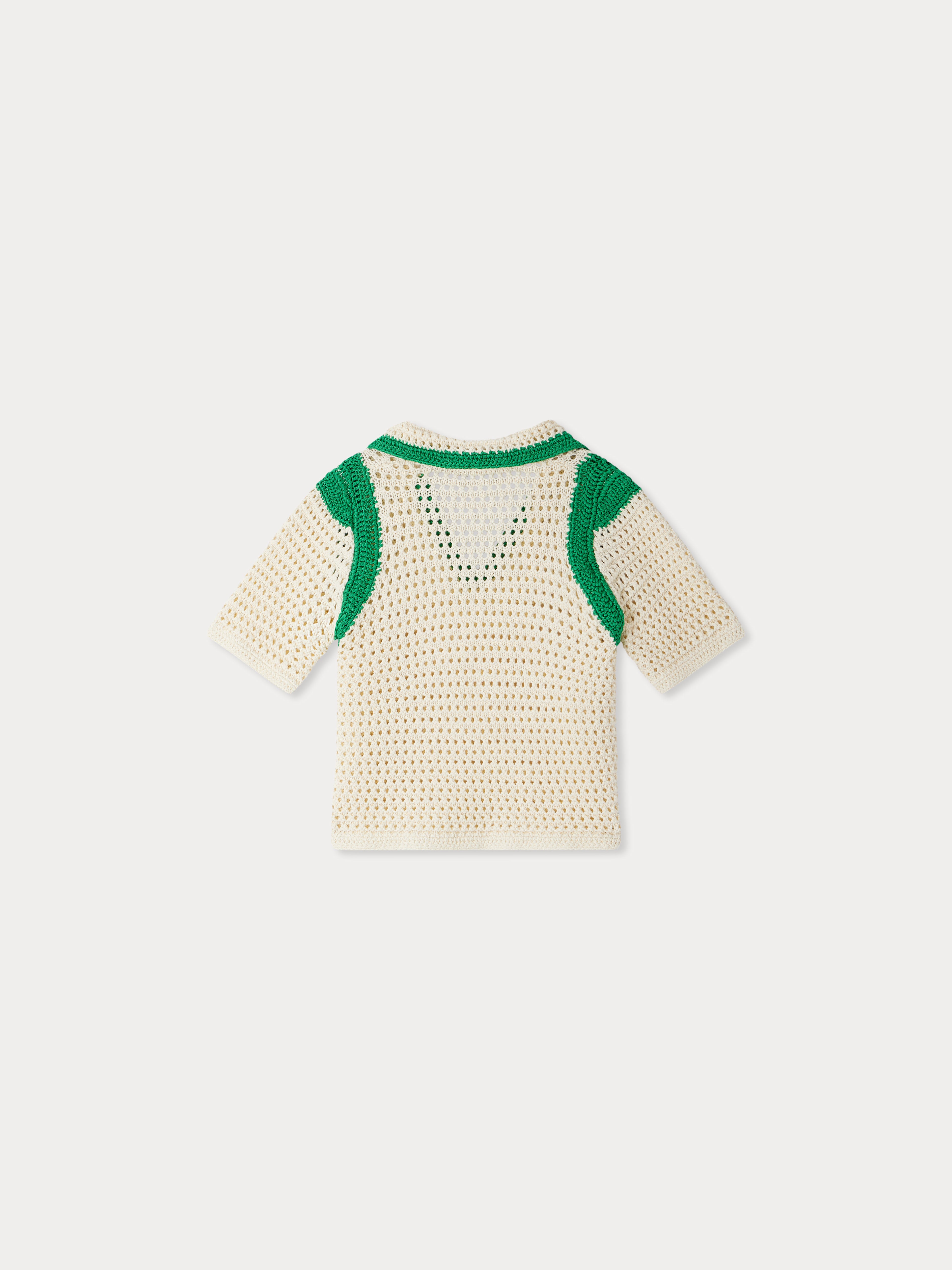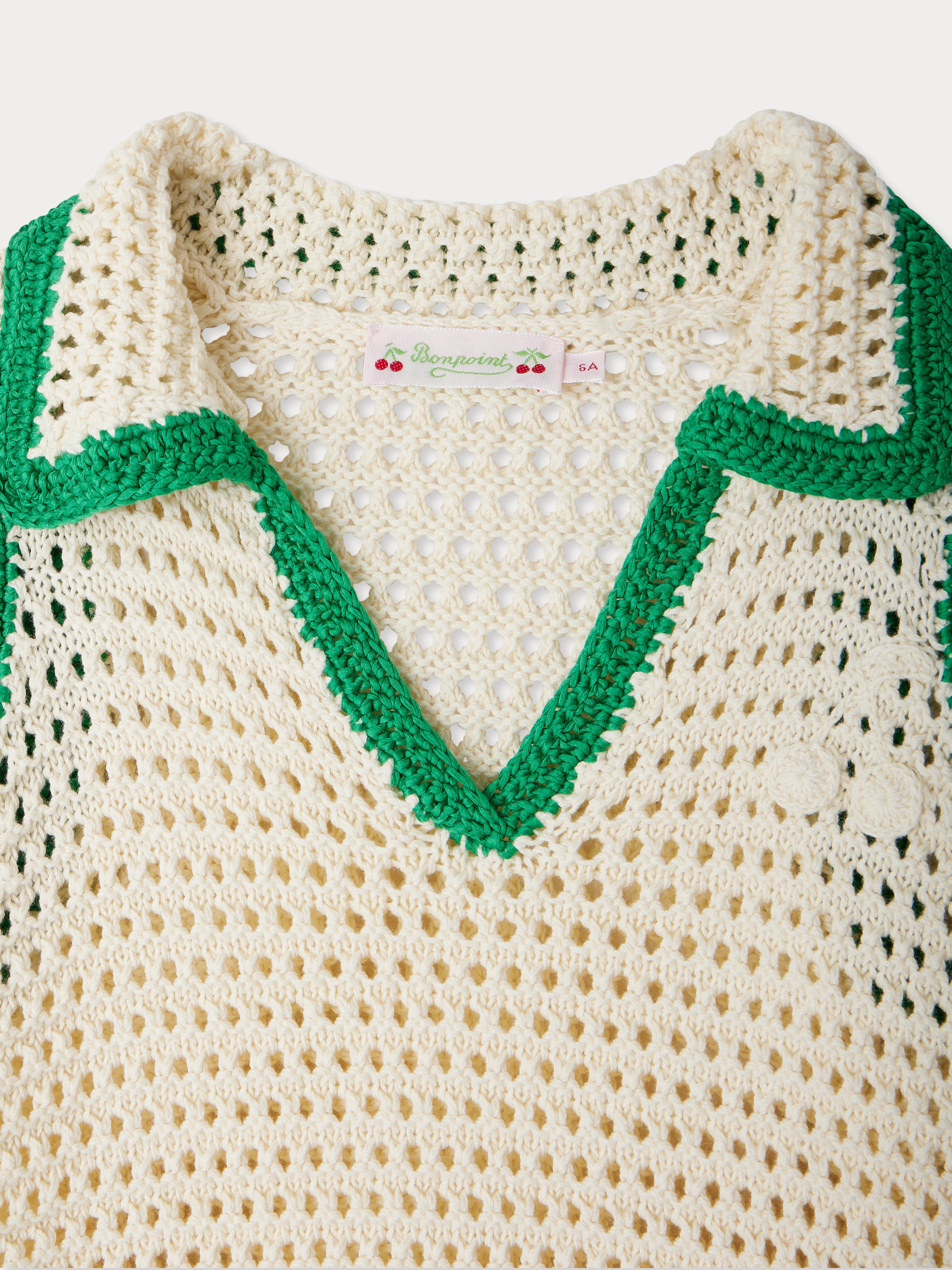 Bonpoint Ekru Yeşil Ajurlu Kroşe Yakalı Kız Çocuk Triko