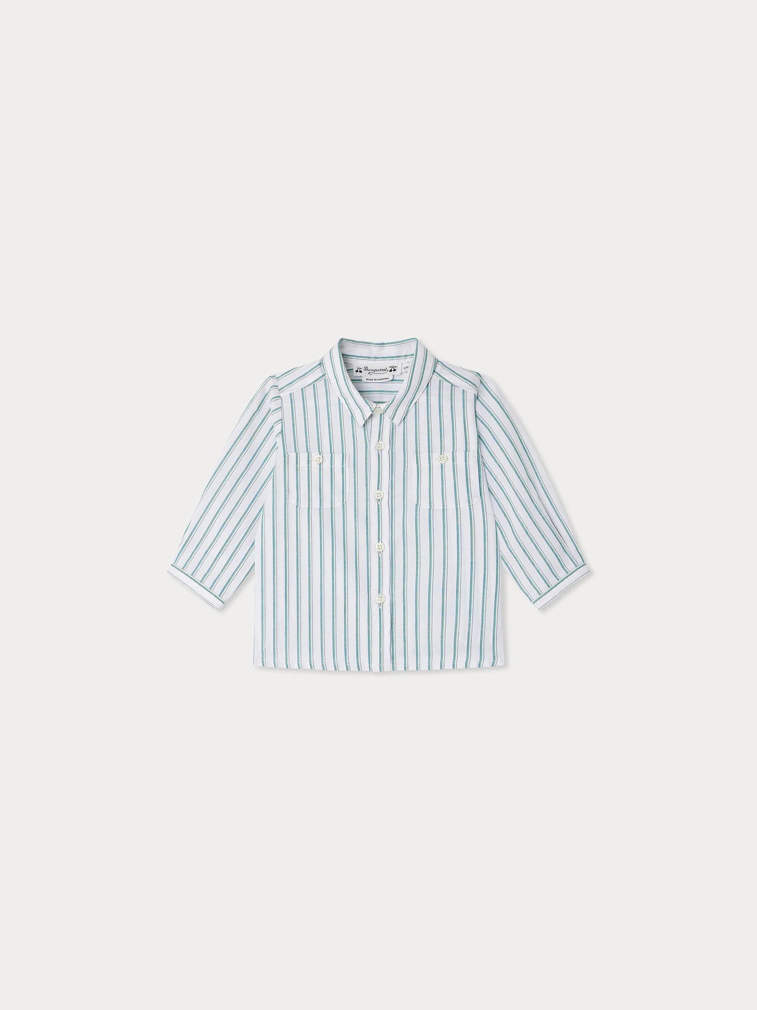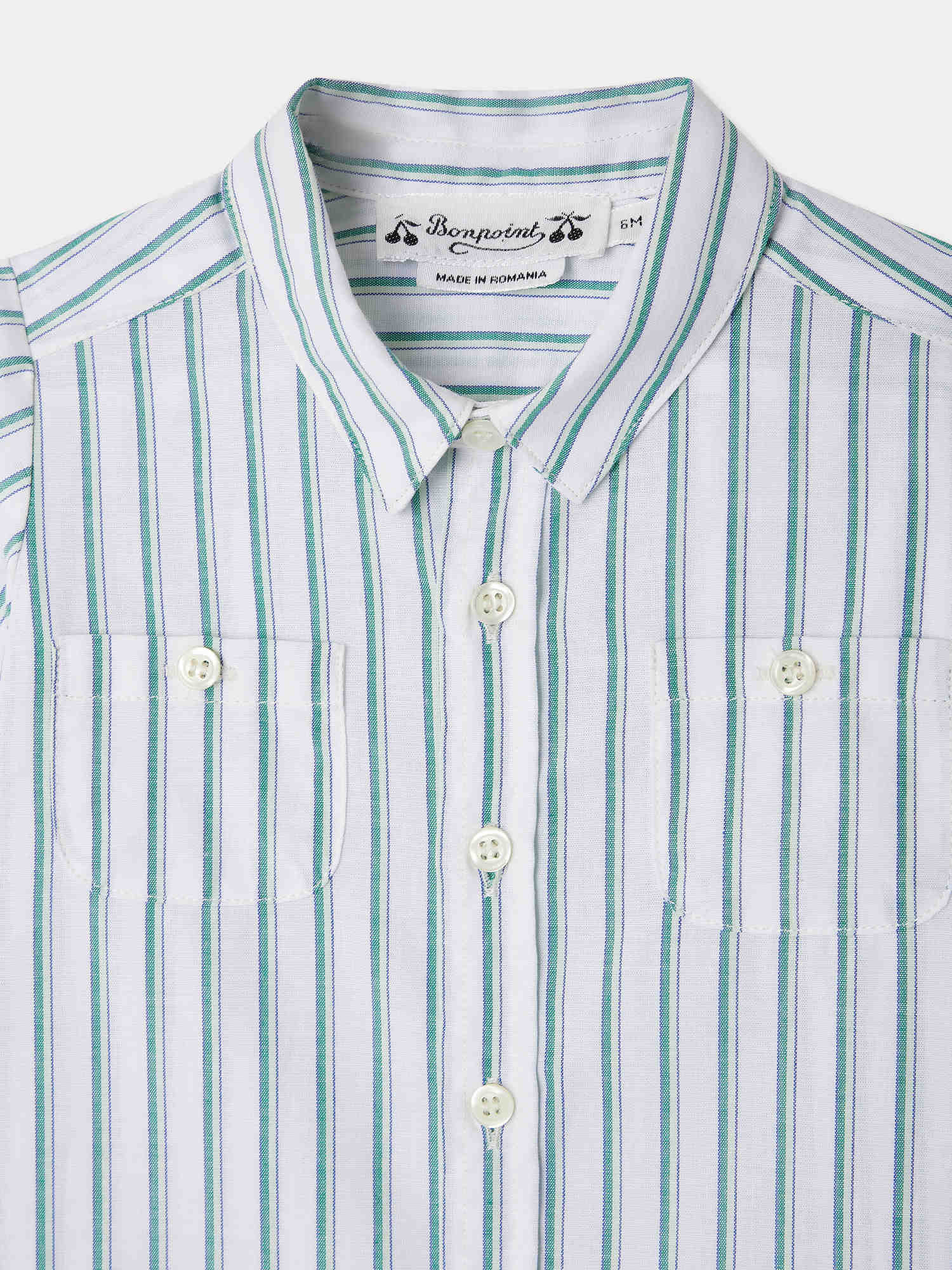 Bonpoint Erkek Bebek Beyaz Yeşil Çizgili Klasik Gömlek