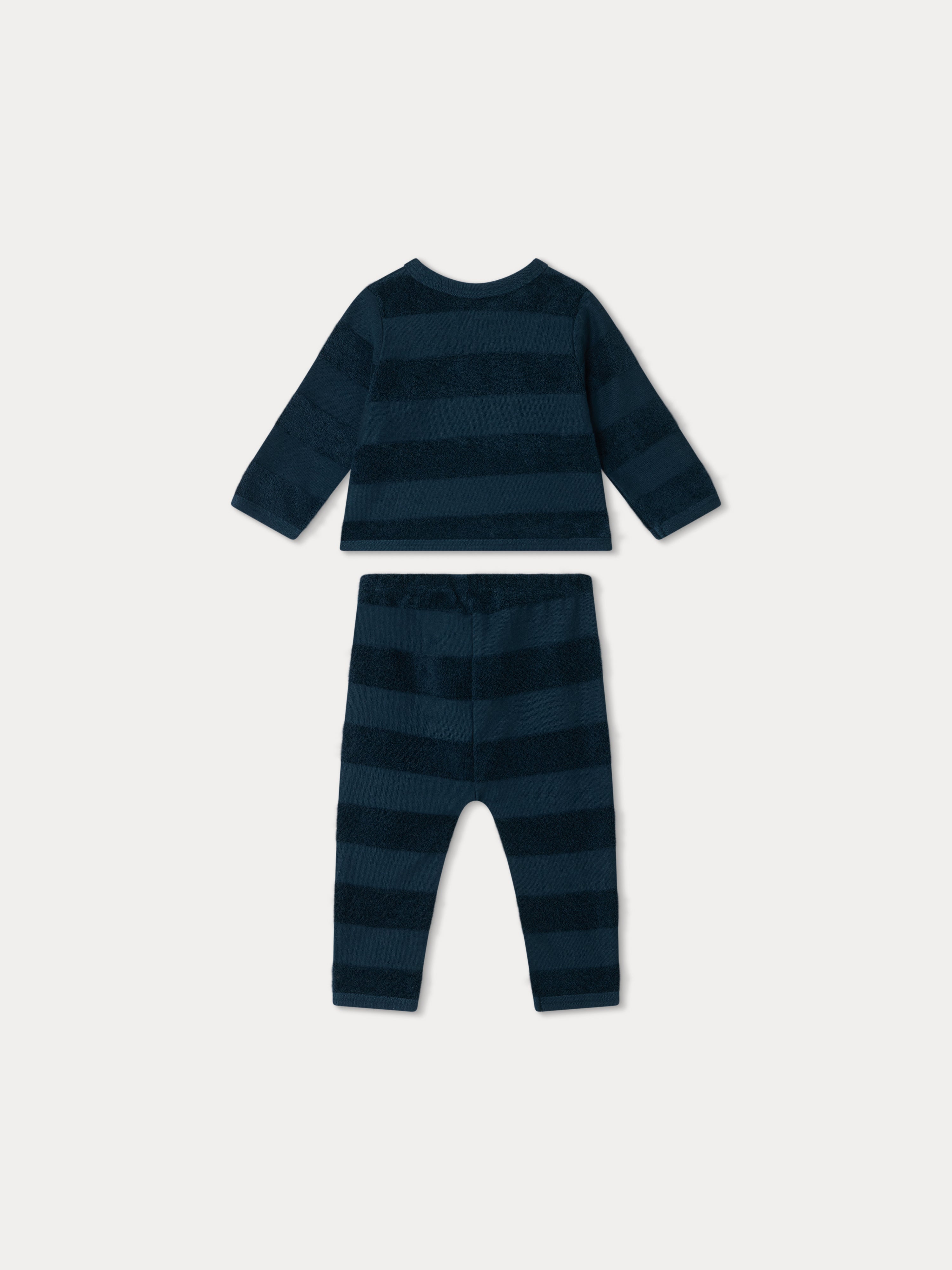 Kadife kabartma çizgili , beli lastikli erkek bebek penye takım