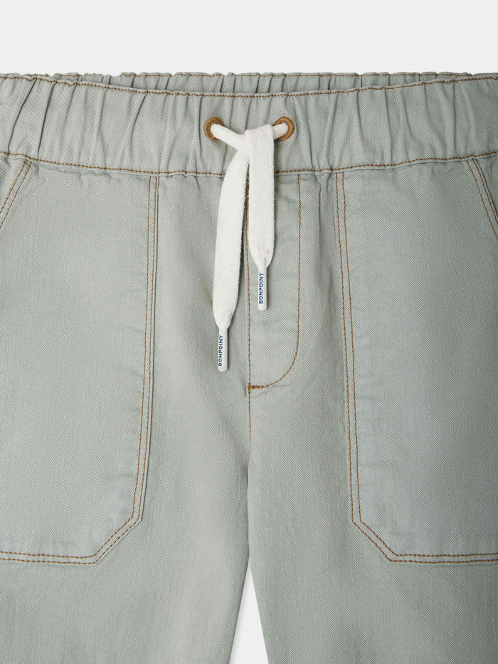 Çocuk modasında rahatlık ve şıklığı bir araya getiren Bonpoint’ten yaz sezonuna özel yumuşak denim pantolon! Jogging pantolon rahatlığını denim görünümüyle buluşturan bu yeşil erkek çocuk pantolon, ayarlanabilir beli sayesinde çocuğunuzun hareket özgürlüğünü destekler.
