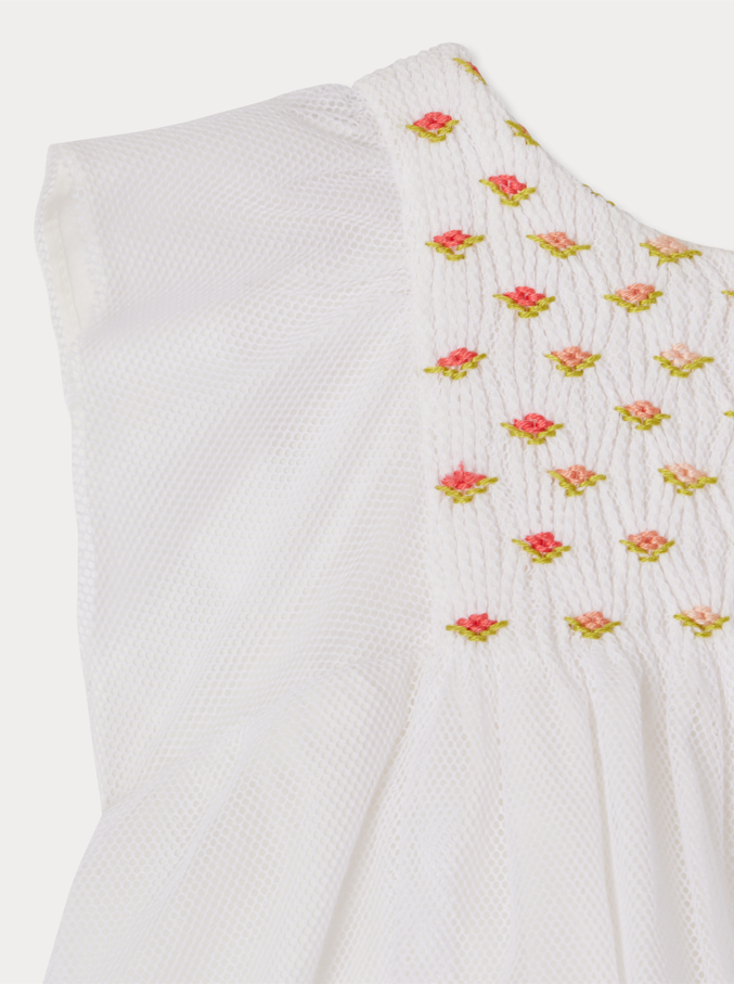 Bonpoint Kız Bebek Beyaz Bal Peteği İşlemeli Tül Elbise