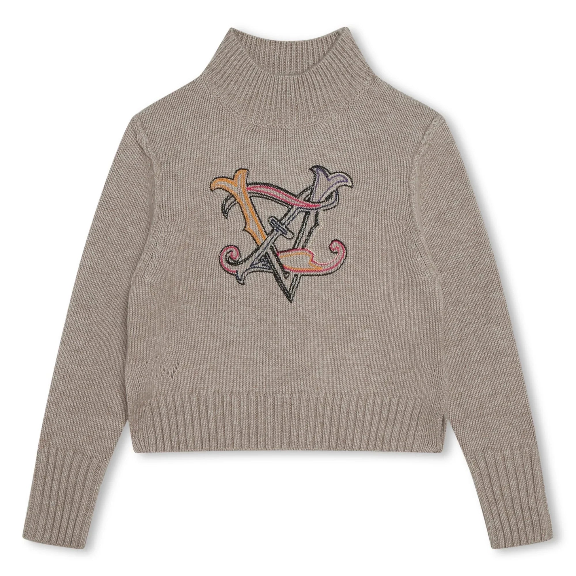 Yarım balıkçı yaka , ön logo işlemeli kız çocuk yün kazak , %65 Yün , %35 polyamid