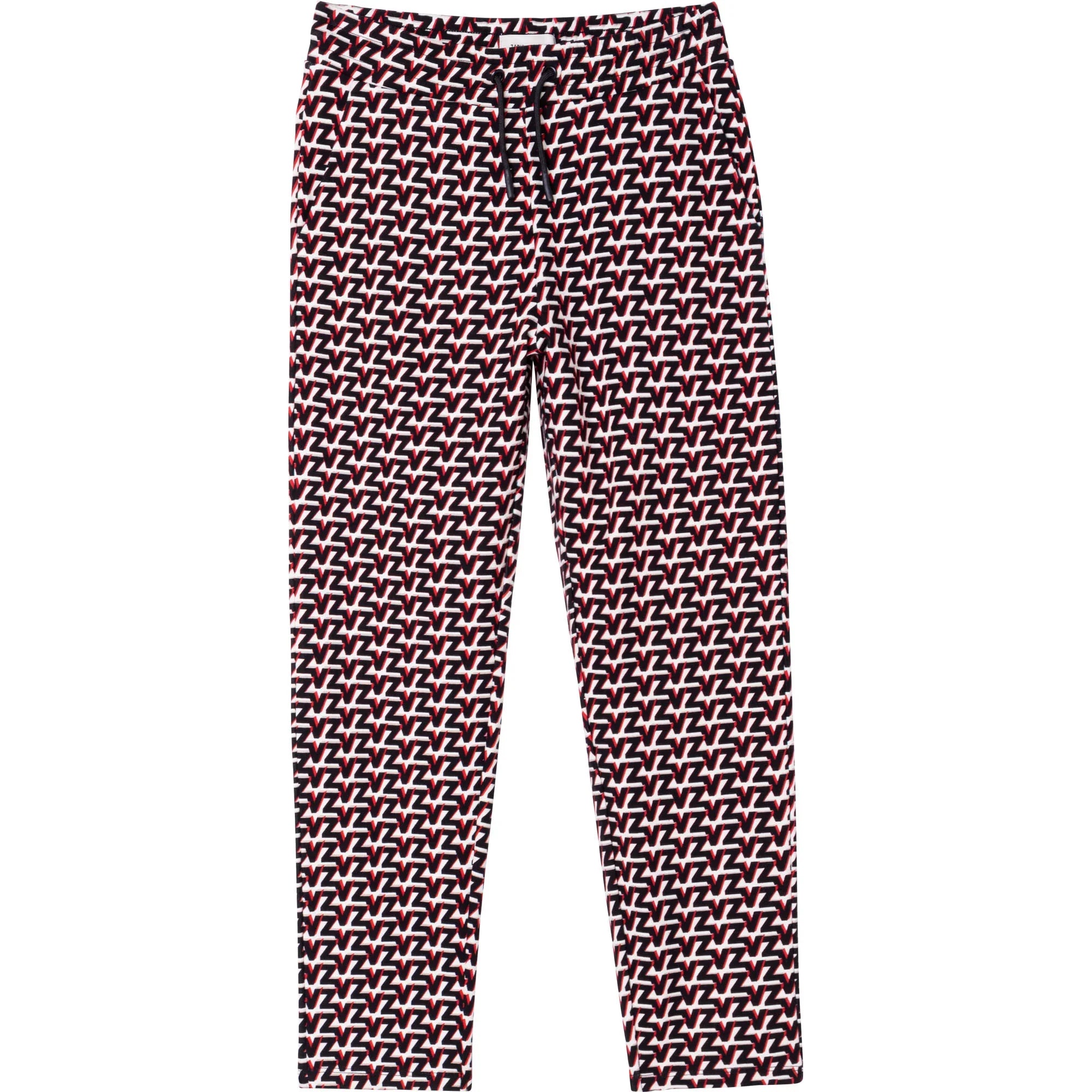 Beyaz üstüne kırmızı siyah ZV baskı desenli kız çocuk pantolon %83 viskoz , %13 polyamid , %4 elastan