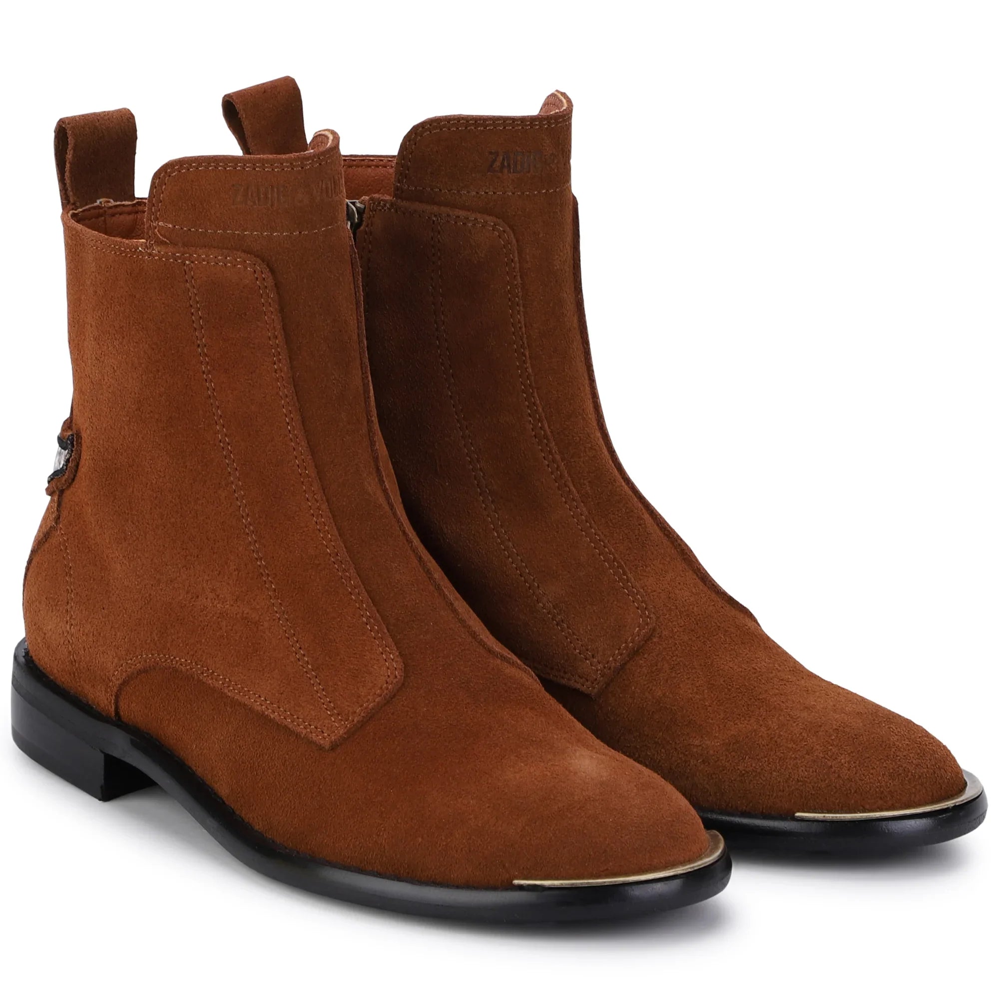 Zadig&Voltaire Kahverengi Yandan Fermuarlı Kız Çocuk Süet Bot